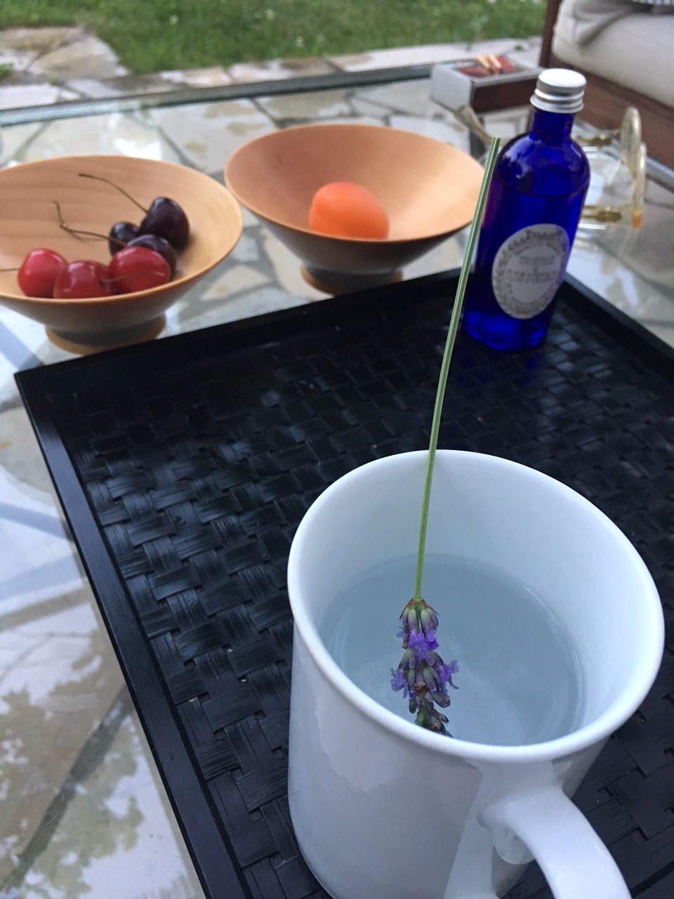 夜は庭のラベンダーを1本摘んでカップに入れ、お湯を注いでハーブティ。日本でいうと、山椒の葉を庭から摘んでくるようなもんだなと思い、帰ったら庭に植えようと思ったのでした。