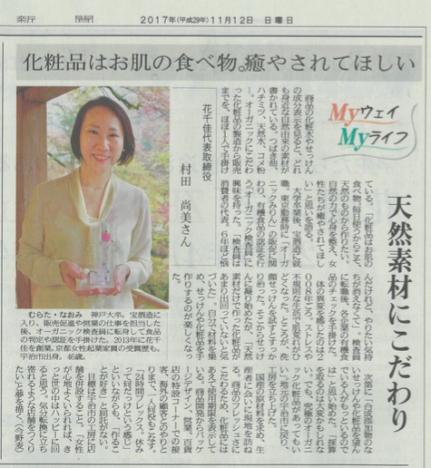 コラボ化粧品で、たいへんお世話になっている貴船神社様をお借りして京都新聞様に取材をしていただきました。 起業の経緯から今までのお話をさせていただきましたが、今... -
